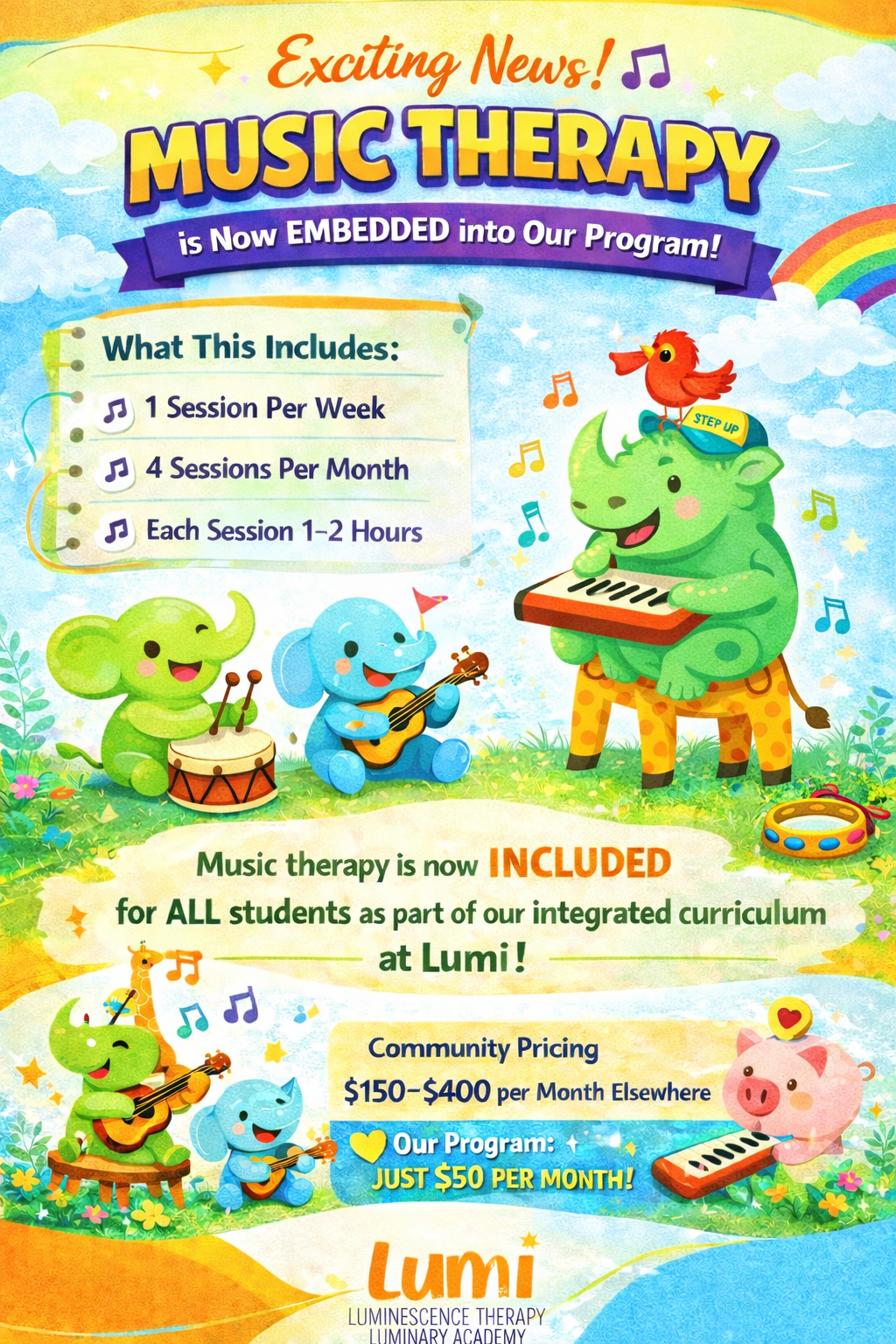 In collaboration with Luminary Academy microschool, our ABA center offers a unique fusion of clinical rigor and creative engagement. We utilize a specialized communications app and streamlined parent scheduling to ensure families are always connected, while our embedded music therapy programs create a joyful, clinical environment where development thrives.